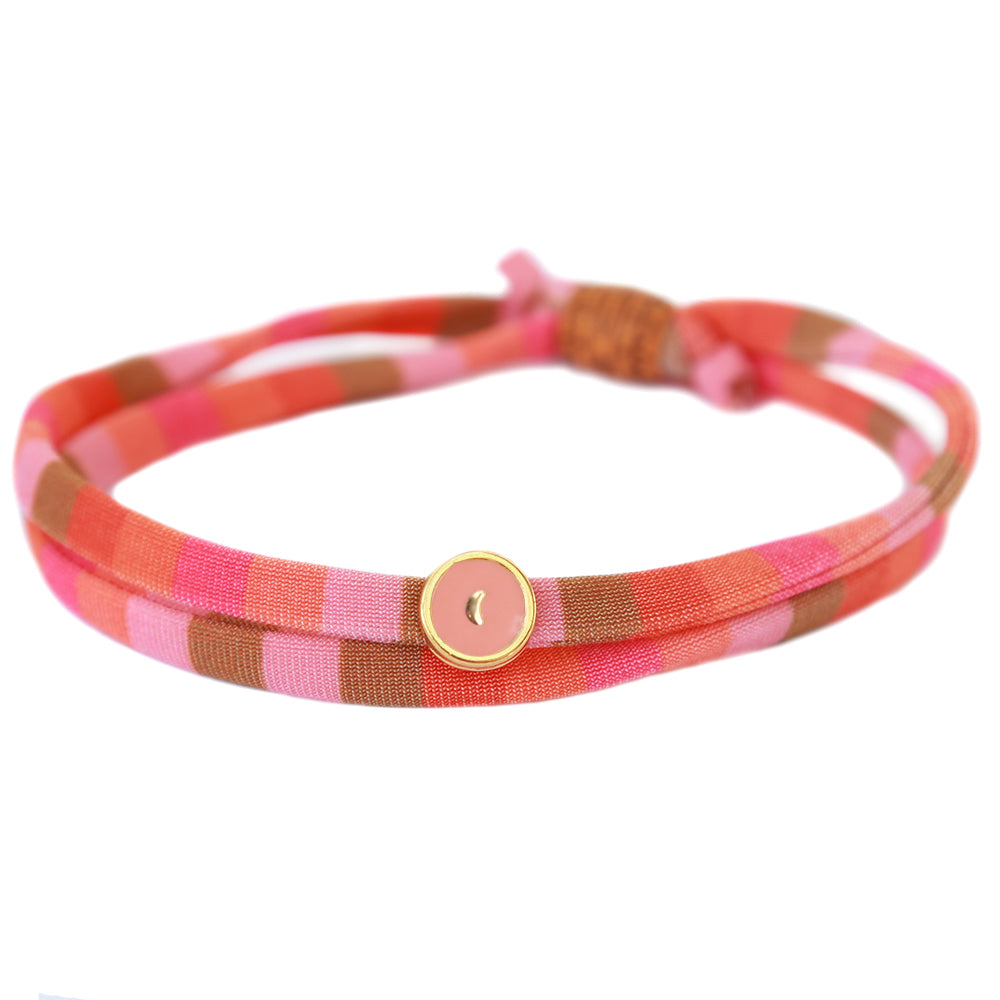 Schönes farbiges Wickelarmband mit rosa Palmenanhänger.