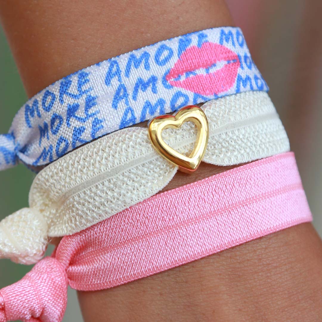 ♥ Tipp: Falls das Haargummi mit der Zeit etwas zerknittert, kannst du es mit einem Glätteisen wieder glatt streichen. Dies solltest du bei den Haargummis mit Goldfolie aufgrund des Foliendrucks nicht tun.