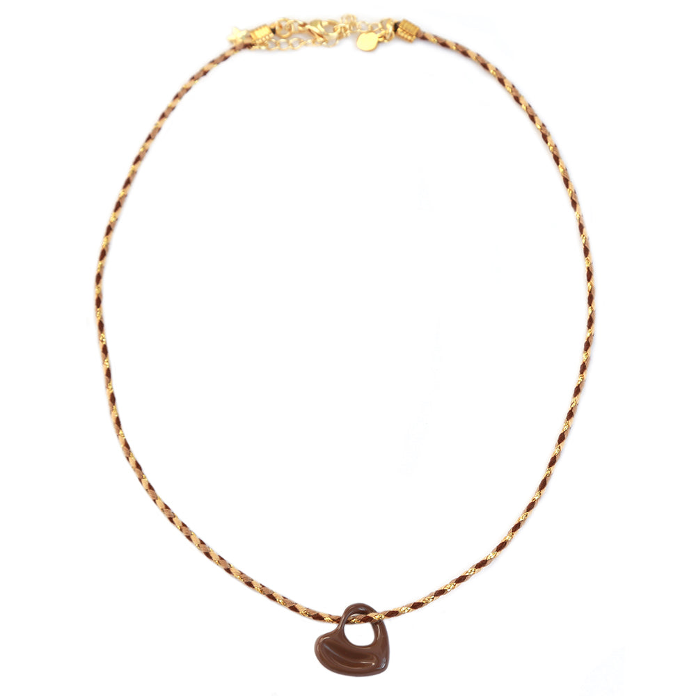 Schöne Halskette aus einer herbstlich gefärbten Kordel und einem kleinen braunen Herzanhänger!