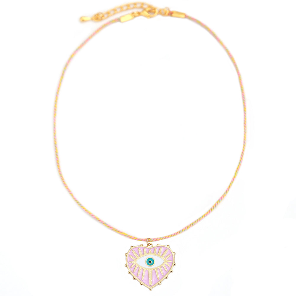 Hübsche Halskette in Hellrosa mit Herzanhänger und bösem Blick!