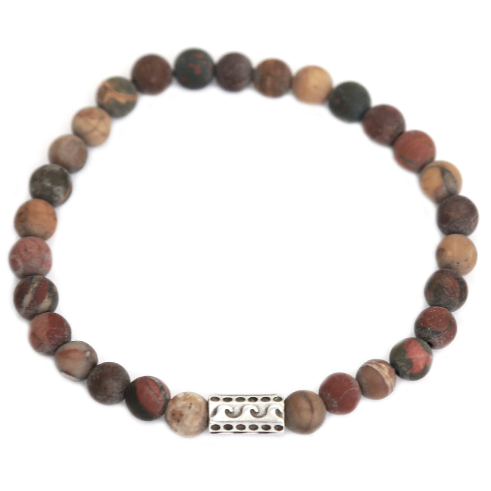 Schönes Herrenarmband aus Tigerauge-Perlen und einem silbernen Anhänger mit Wellen.