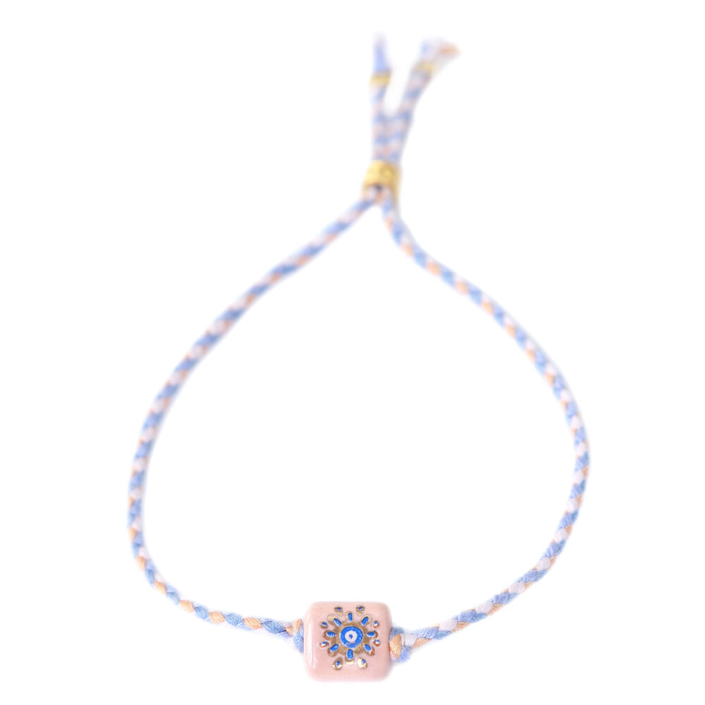 The bracelet is easy to adjust with the gold bead.Material: Cotton, ceramicThe Evil Eye occurs in many...