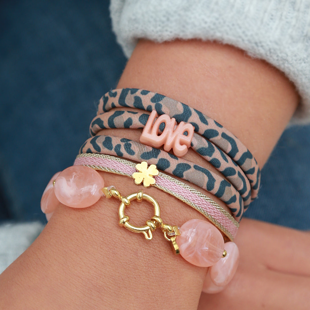 Onze bestseller armband/enkelband leopard love, armband pastille peach en een geweven klaver armband!