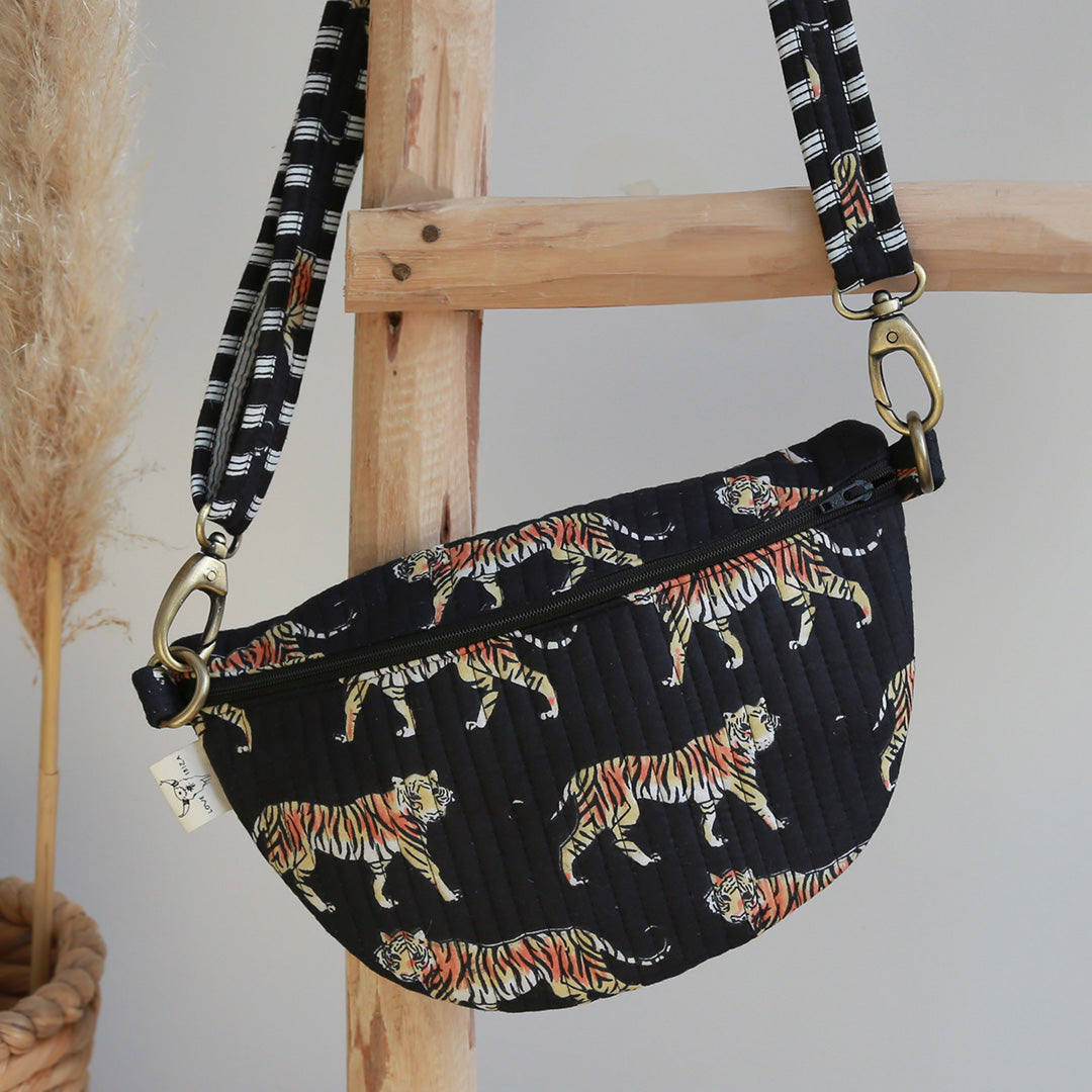 Cute crossbody bag in a great handmade block print. The bag has a matching zipper closure and an adjustable handle.