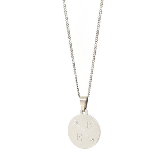 Both the chain and the charm are made of stainless steel and therefore do not discolour. However, we do not recommend showering, swimming or sleeping with the necklace.