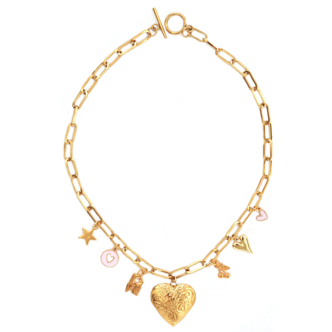 Material: Stainless steel chain, charms mix of Stainless steel and gold plated