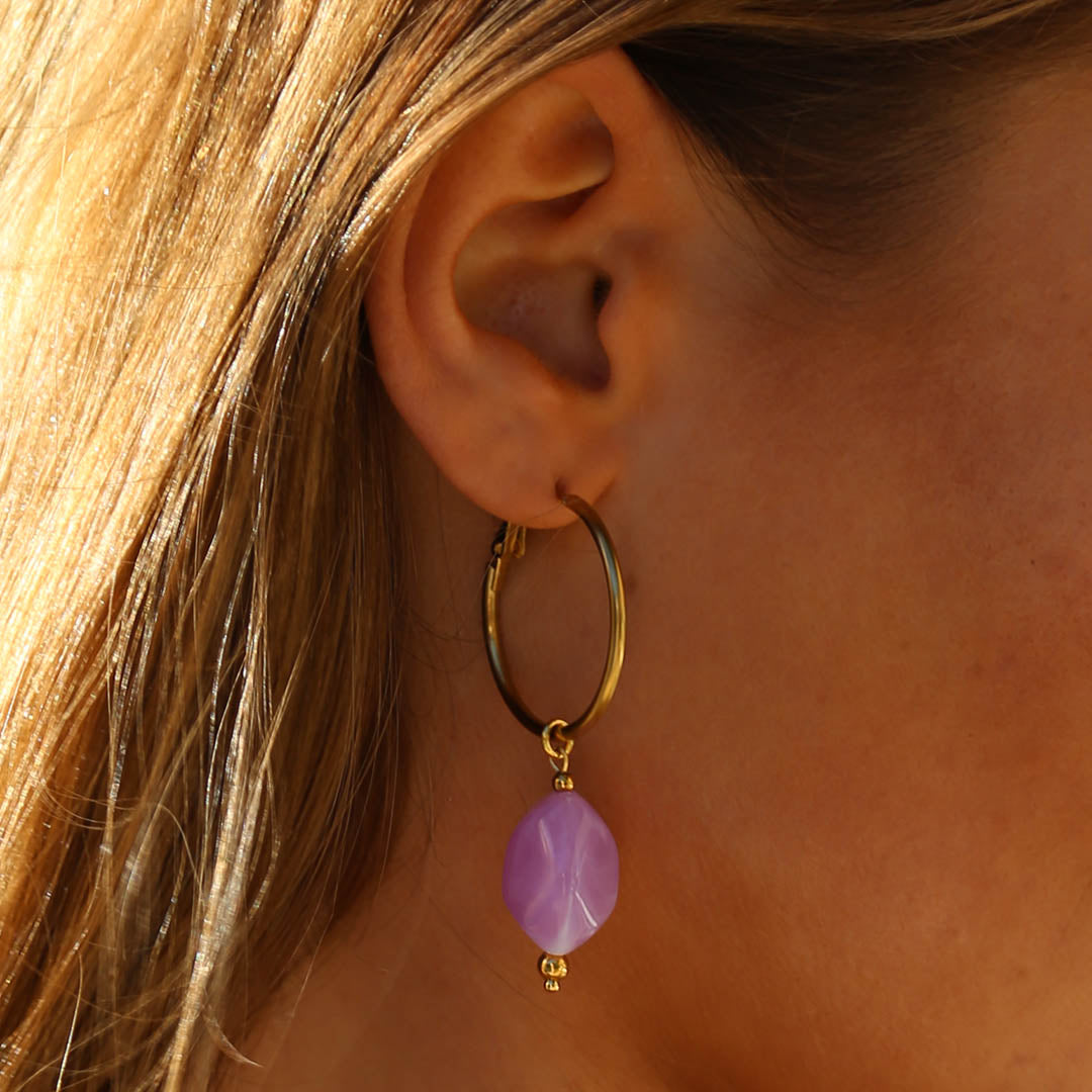 Deze prachtige oorbellen maken iedere look compleet! Draag ze solo voor een subtiel statement of combineer ze met meerdere oorbellen voor een trendy earparty. Heel leuk te combineren met onze gouden ketting rocks lila!