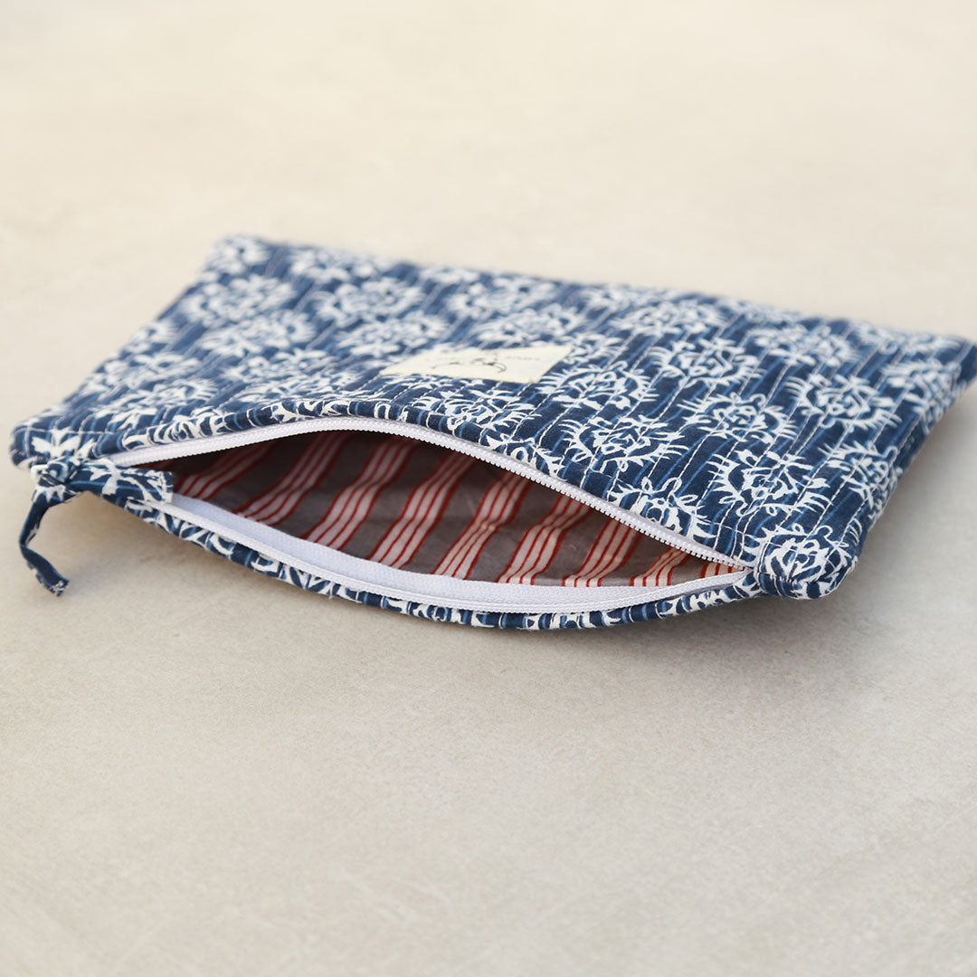 Leuke blockprint make-up pouch met verschillende kleuren. Ze zijn super handig om te gebruiken als make-up tasje maar ook om wat kleinere spullen in te doen wanneer je een grote tas gebruikt.