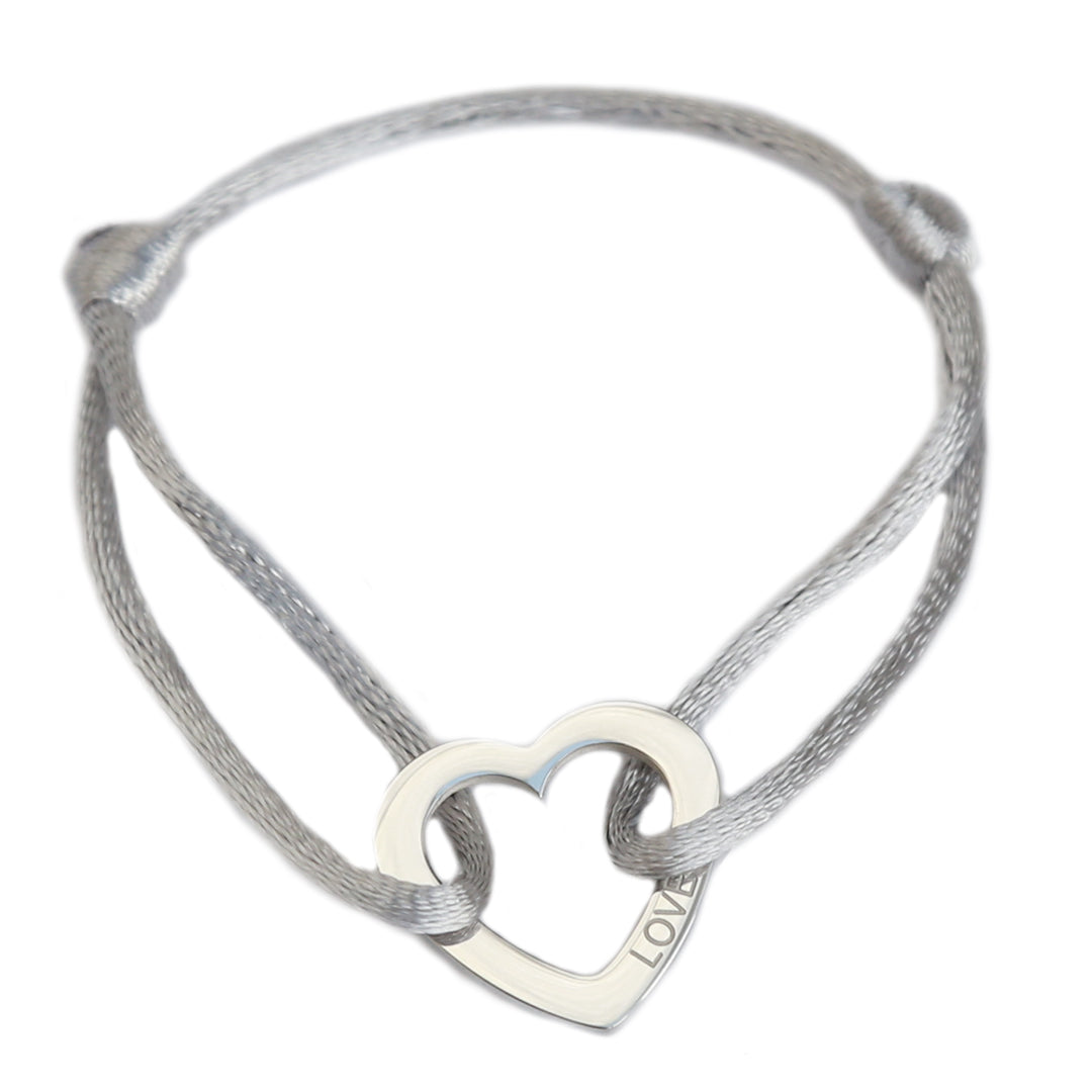 Bracelet en soie argenté avec une breloque en forme de cœur avec le texte 'LOVE'. Vous pouvez...