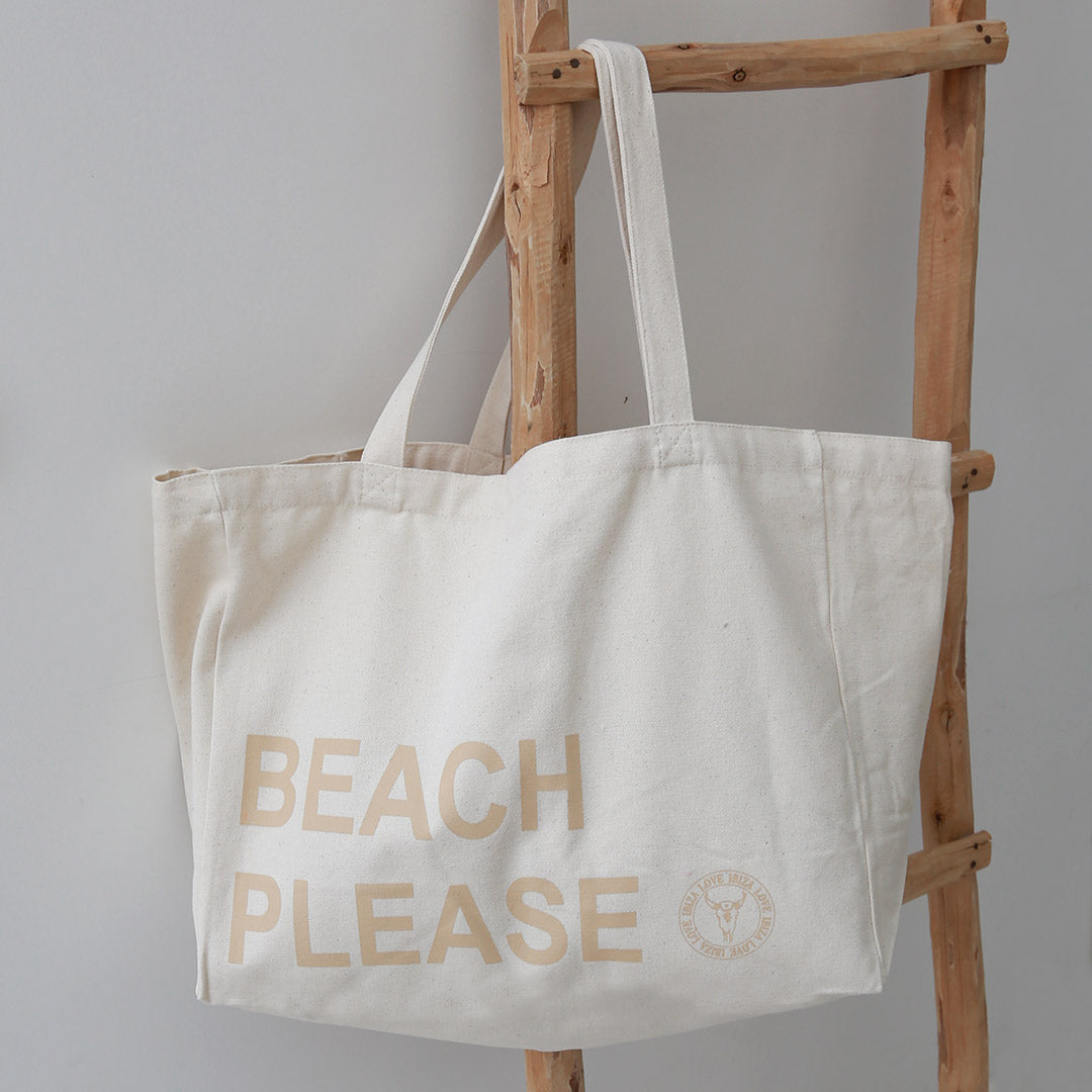Let's go to the beach! Deze beige canvas strandtas met de tekst BEACH PLEASE is ideaal voor een stranddagje in eigen land of op vakantie.