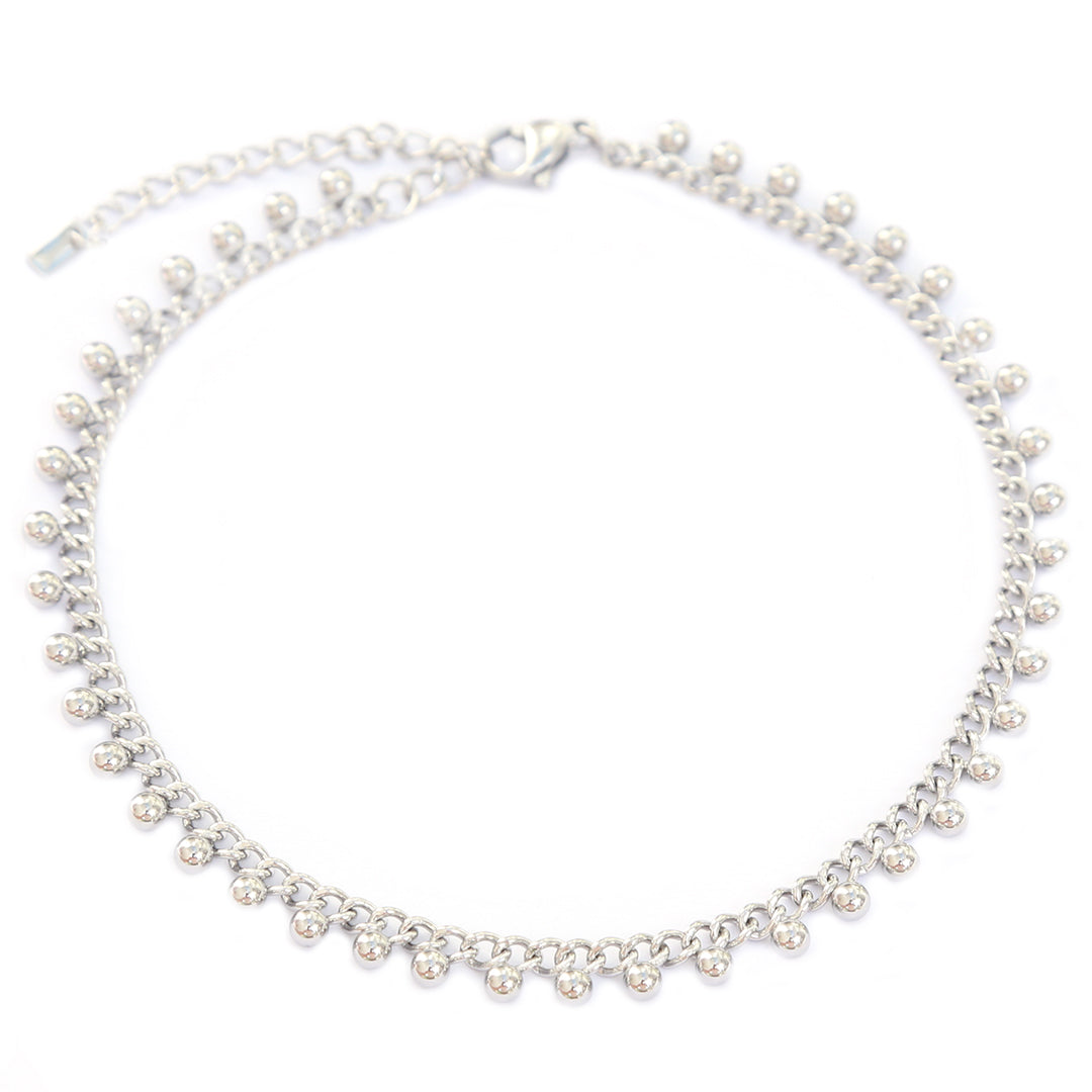 Leuk zilveren chain enkelbandje met zilveren balletjes.
