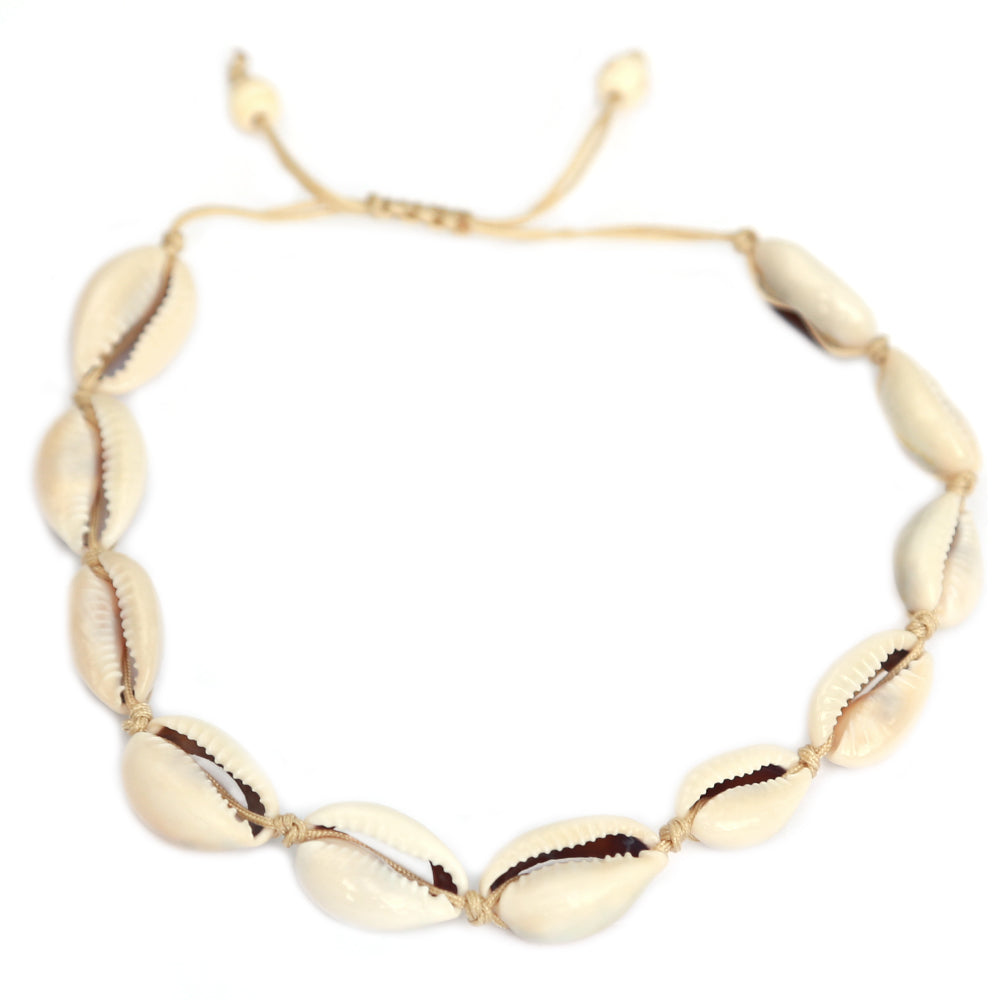 Leuk enkelbandje met creme kleurige schelpjes. Je kunt het enkelbandje makkelijk op maat schuiven.