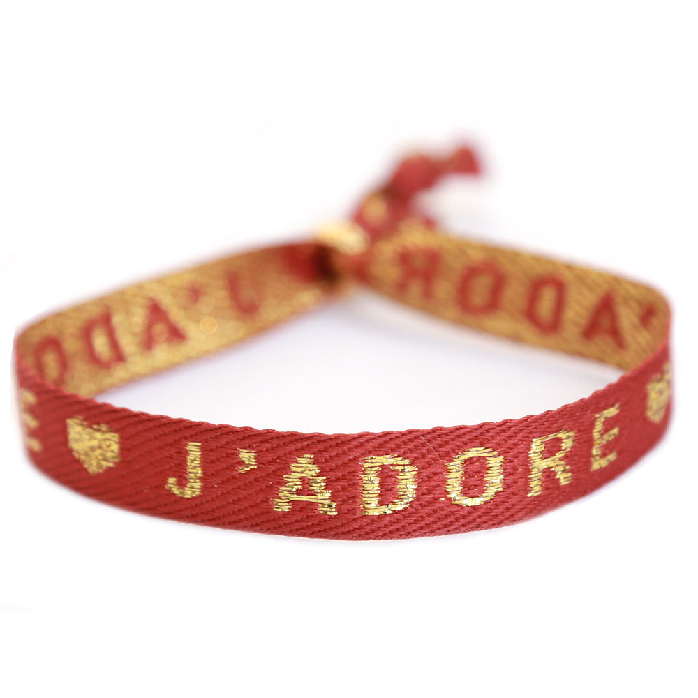 Leuke geweven rood met gouden armbandje met de tekst j'adore.