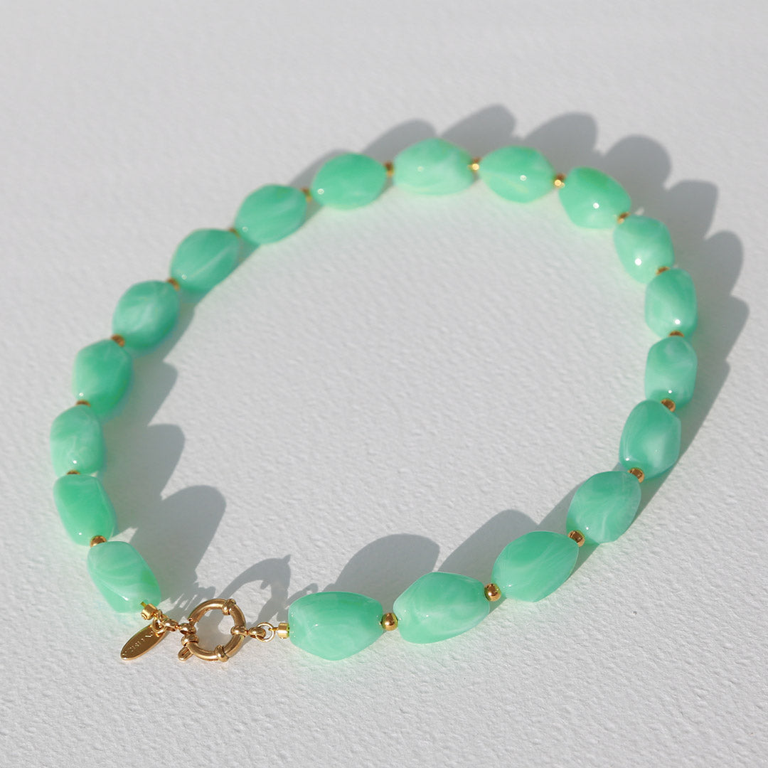 Maak een statement deze zomer! Deze opvallende ketting met turquoise en gouden kralen is dé eyecatcher voor zonnige dagen.