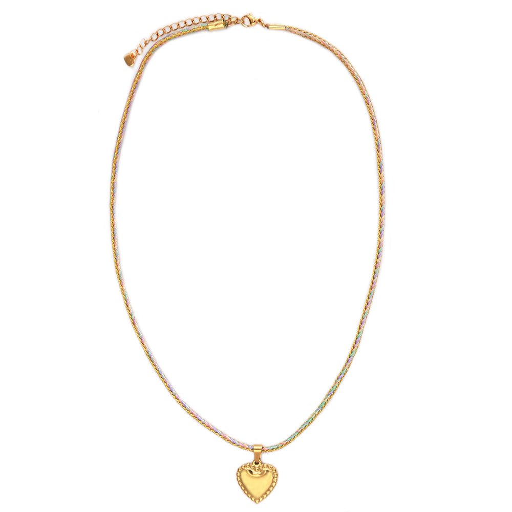 Leuke ketting van gekleurd metallic koord en een gouden hartje.